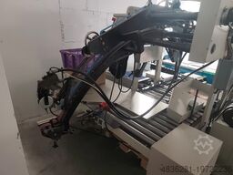 Стандартная моторизованная кривая справа / возвратный транспортер с вибратором, бесконтактные индуктивные датчики, лазерный счетчик, моторизованная регулировка по высоте, схема укладки: 1–4 ряда/слоя, всего 16 вариантов. Капитальный ремонт 2025: очищено, инспектировано, окрашено, заменены ремни.